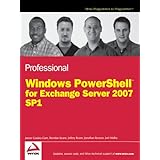 Professional Windows PowerShell for Exchange Server 2007 Service Pack 1 (Programmer to Programmer) ReviewIt's about time this book was written and published. If you own one or more of the half-dozen E2k7 books that have been written and published in the past year, you have just one more to pick up - this one. This book is written to be exactly what E2k7 administrators need after their initial installation of Exchange. Nearly all E2k7 books focus on the management of E2k7 but primarily from the Exchange Management Console perspective. (Actually, a book that does a very good job on command shell topics is the "Mastering Exchange Server 2007" book by Gerber and McBee. It's very good.)Also covered in the book are topics of Troubleshooting, SCC and CR high-availability shell strategies. These three topics alone are worth the price of the book - to have all the PowerShell cmdlets in one place is truly convenient.